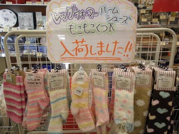 売場展示・販売を行なっております!とくにオススメの商品はもこもこ靴下やレッグウォーマなど女性には嬉しい商品から外出時に便利な、見た目も可愛いカイロなど数多くございます!今のうちにまとめ買いしちゃいましょう♪