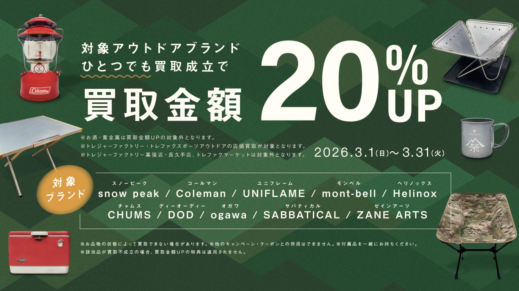 アウトドアブランド10選買取20%UPキャンペーン
