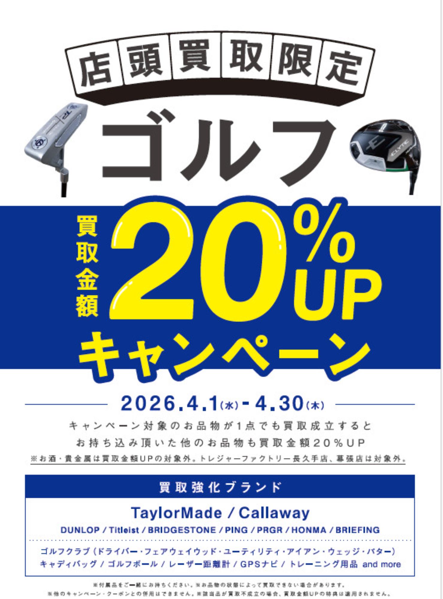 ゴルフ用品買取20%UPキャンペーン実施中!