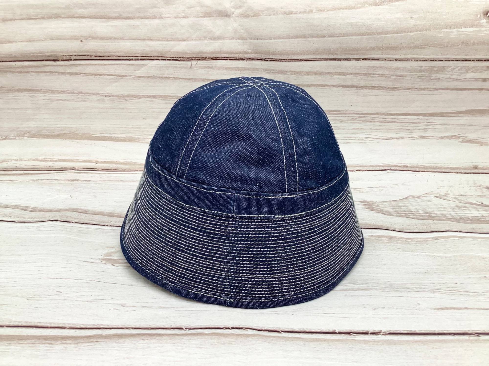 デニム生地にホワイトのステッチで