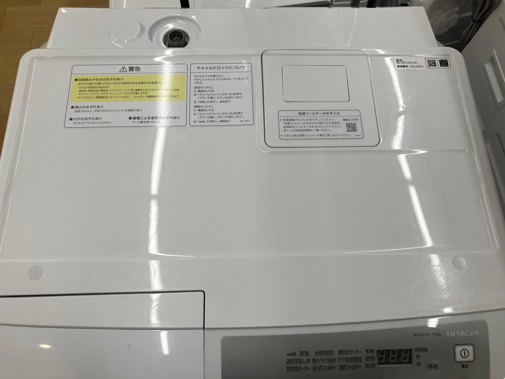 ヒタチの2023年製 ドラム式洗濯乾燥機 ”BD-SG110J” を紹介します!
