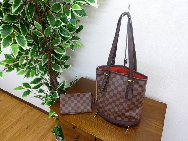「LOUIS VUITTON」 ダミエ ポーチ付ショルダートートバッグを