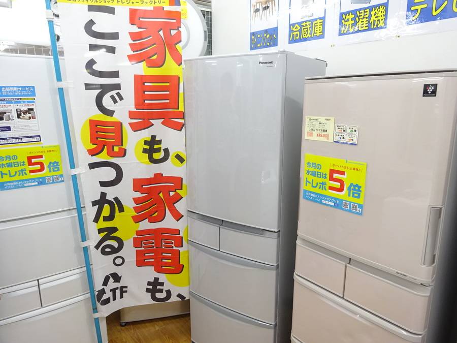 3ドア、5ドアの大型冷蔵庫もお選びいただけるほど充実しています!