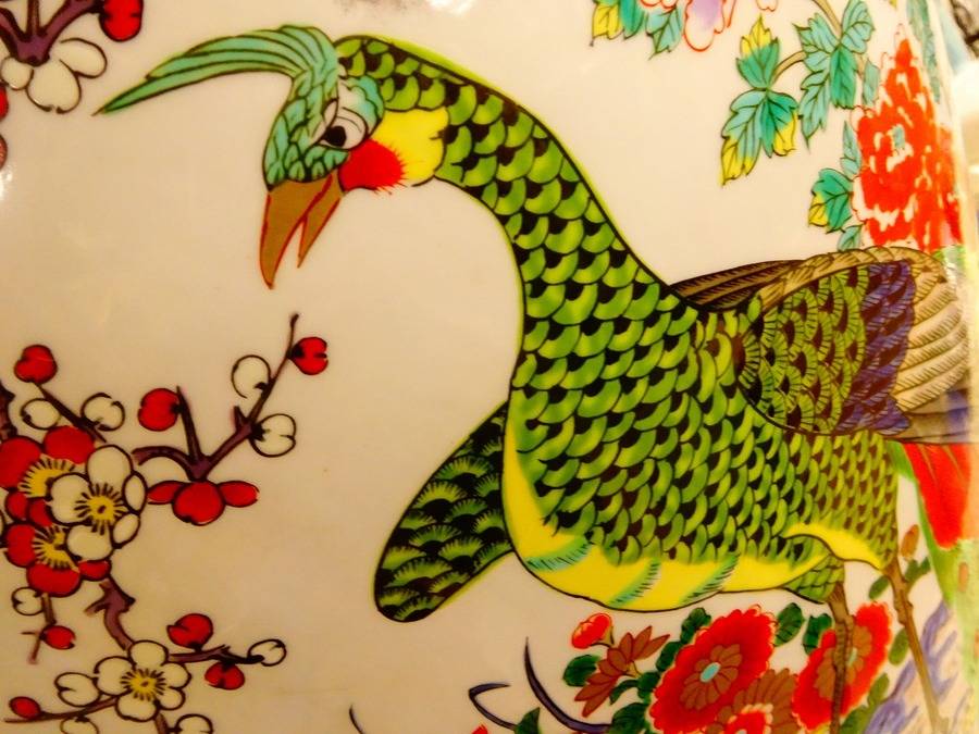 色鮮やかに描かれた花鳥図が美しくなんとも味のある作品。