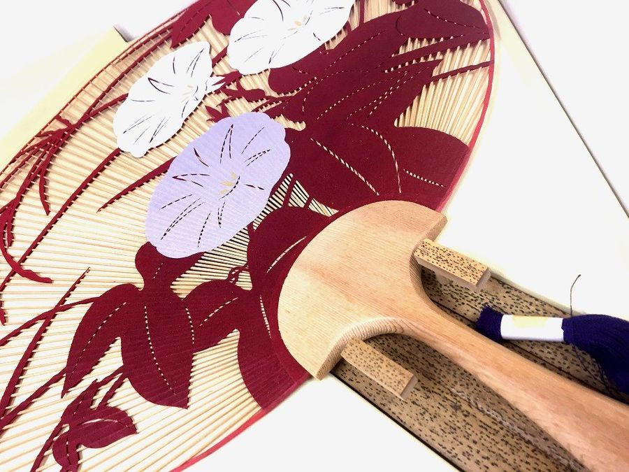 優美な装飾を施した繊細なつくりの京うちわ。