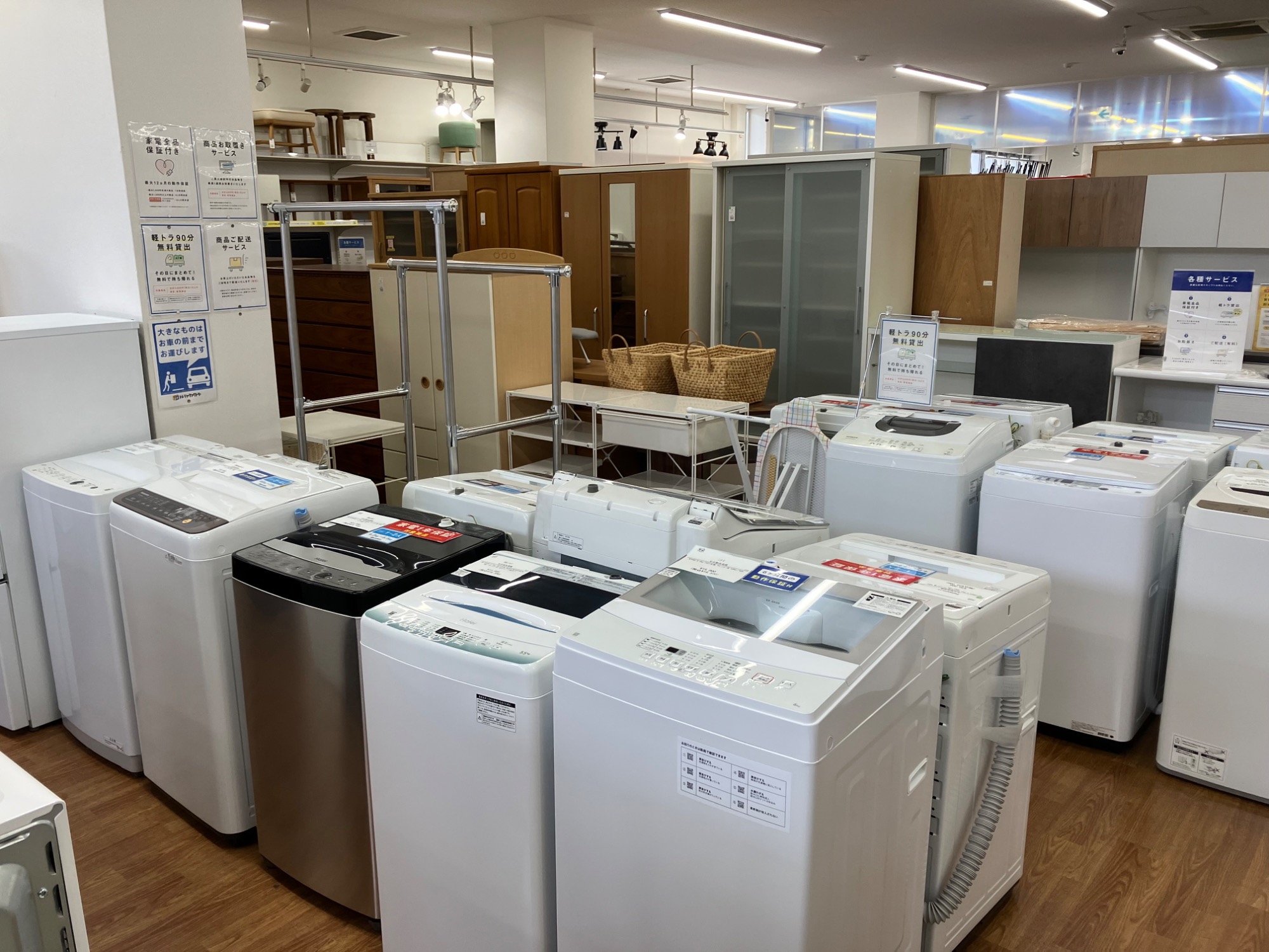人気サイズの洗濯機は店頭でも動きが早い商品です。