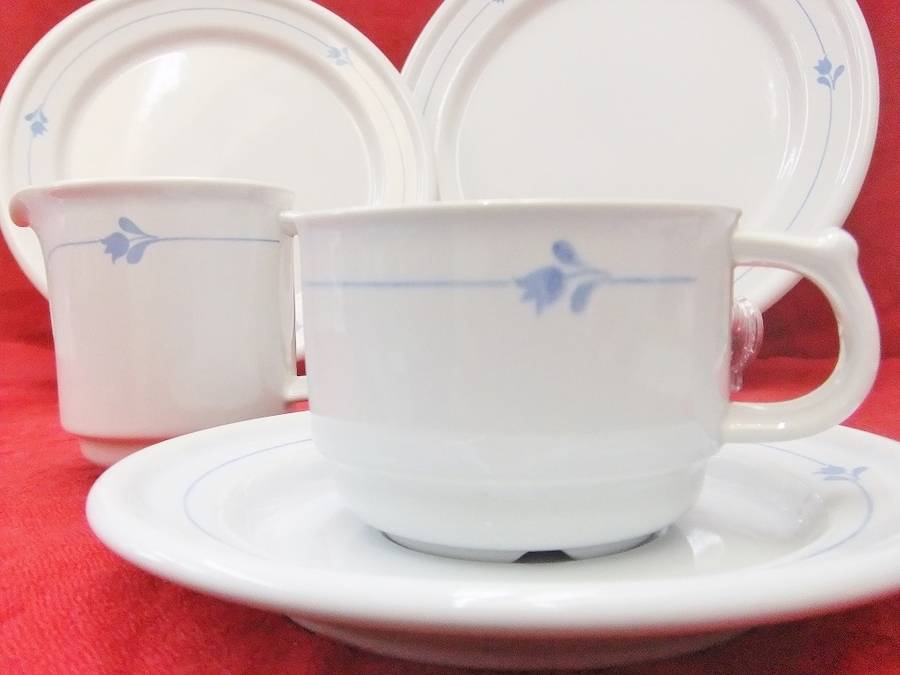 かわいらしいフォルムに青いチューリップのラインとシンプルなデザインが魅力的です。