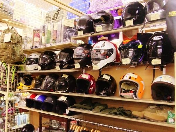 ヘルメットからウェア、小物まで多数展示販売しております!