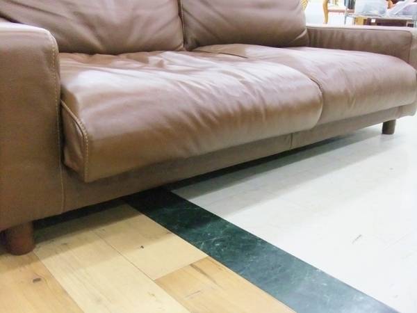 無印良品製3人掛け革張りワイドアームソファー【大和店】