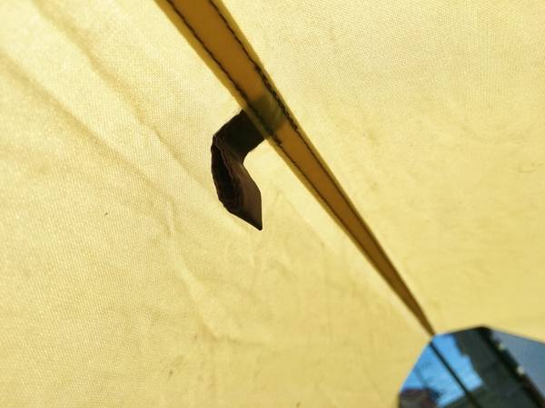 各角にはポケットがあり、撤収時邪魔に