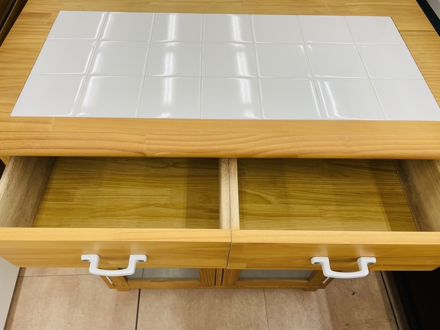 タイルトップと木の素材感が絶妙なバランスでオシャレです。