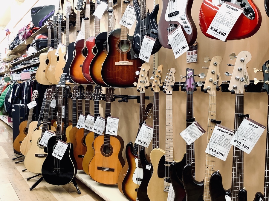 大和駅から車で5分!地域屈指の楽器強化店舗でギターやベース、アンプ、エフェクターなど常に100点以上展示しております!