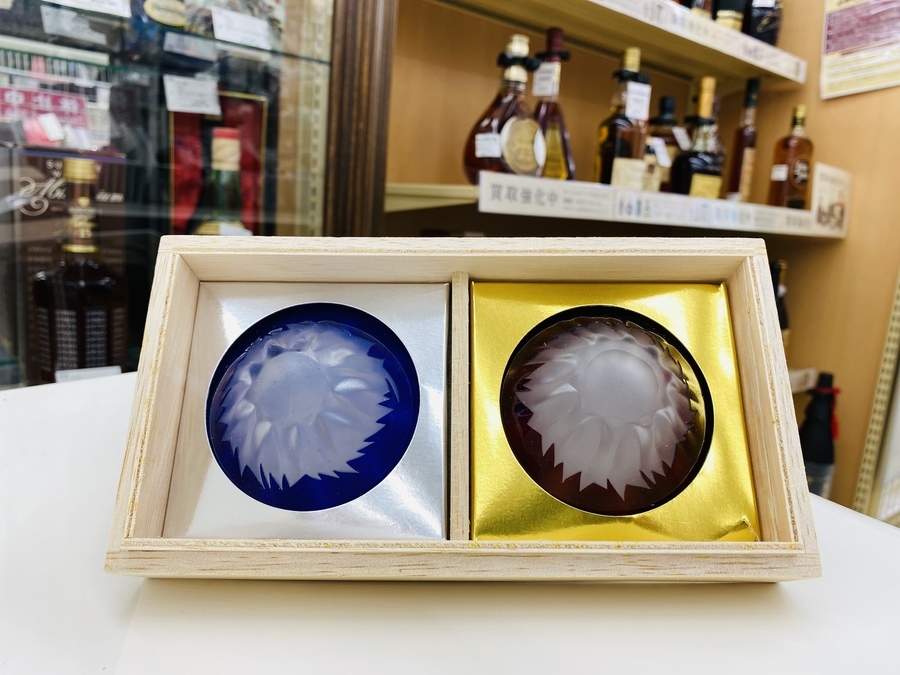 江戸切子 青赤富士祝盃 2Pセット 買取入荷しました!