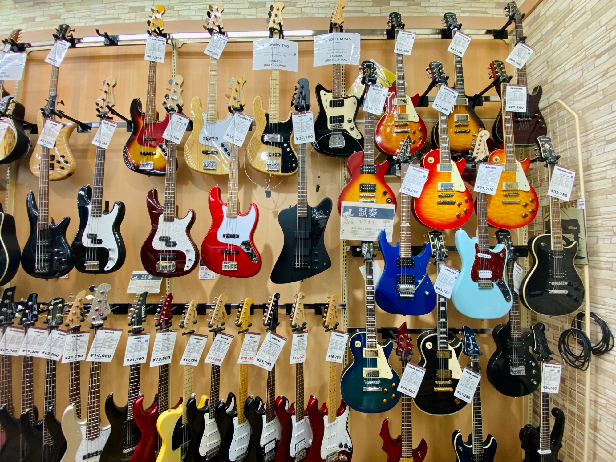 大和駅から車で5分!地域屈指の楽器強化店舗でギターやベース、アンプ、エフェクターなど常に100点以上展示しております!