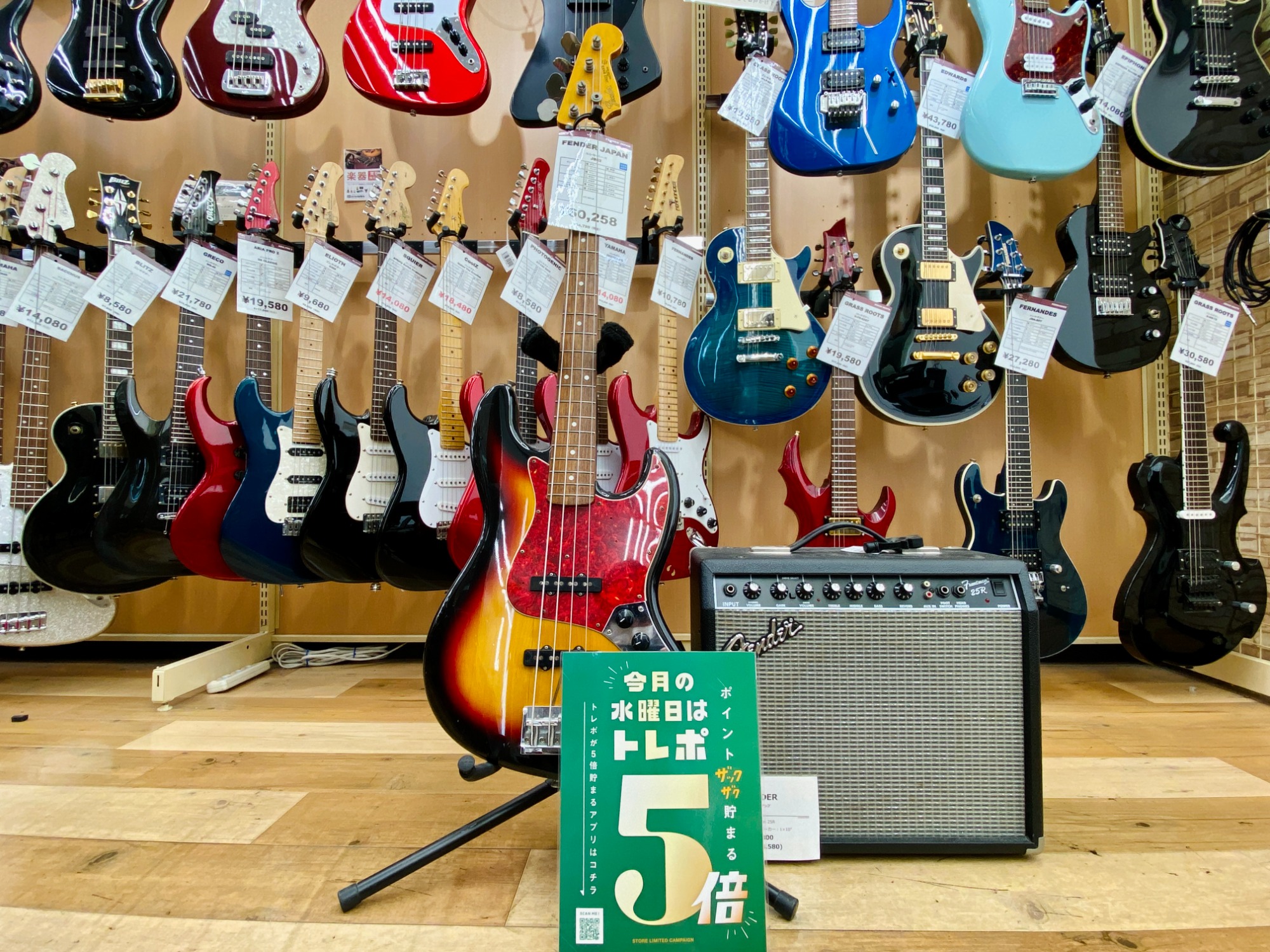 トレファクの楽器強化店、大和店では現在120点以上のギター、ベースを展示中!
