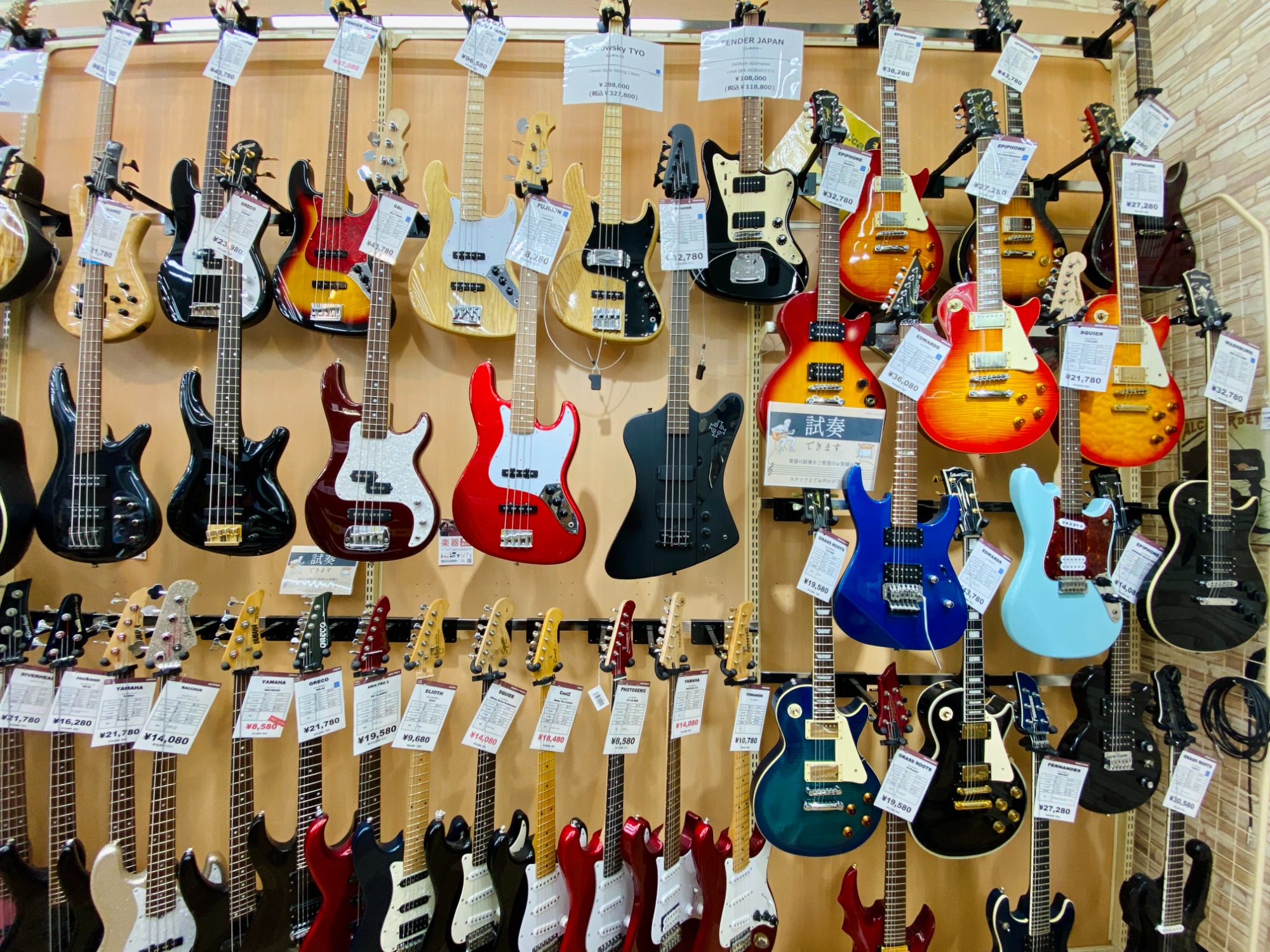 大和駅から車で5分!地域屈指の楽器強化店舗でギターやベース、アンプ、エフェクターなど常に100点以上展示しております!