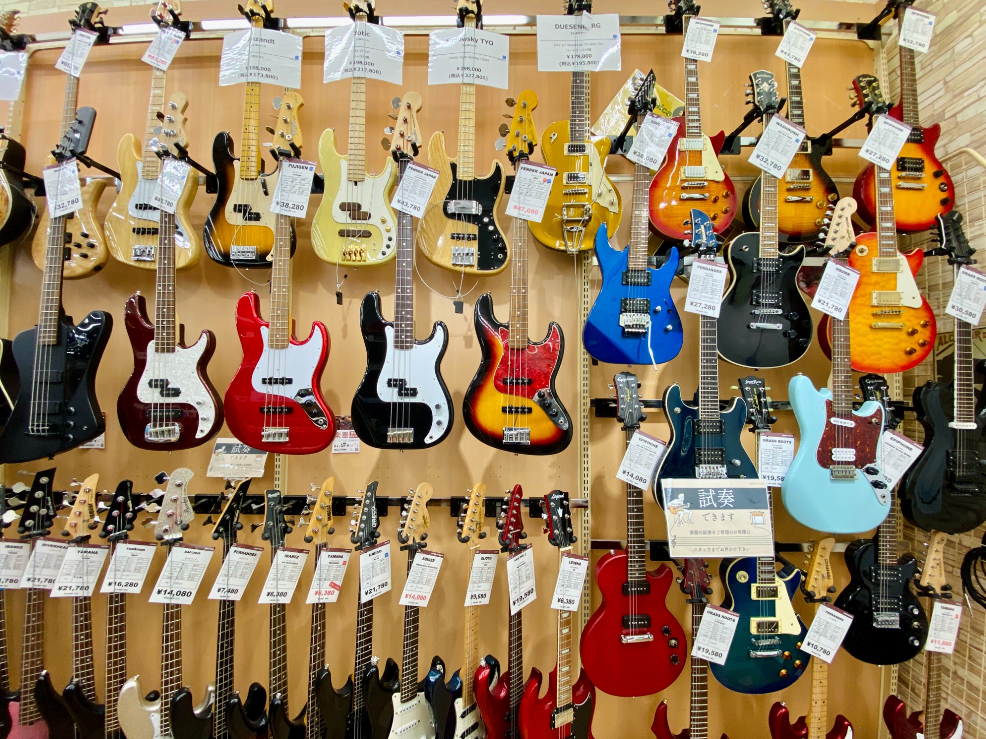 大和駅から車で5分!地域屈指の楽器強化店舗でギターやベース、アンプ、エフェクターなど常に100点以上展示しております!