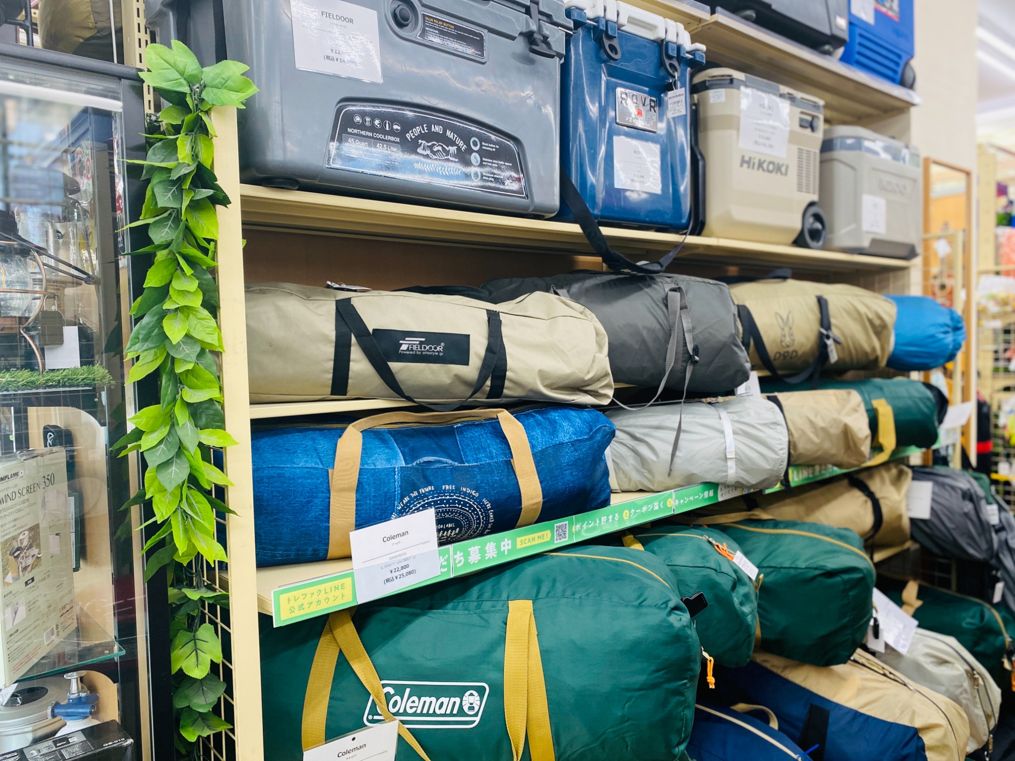 アウトドアコーナーに実際のシーンを再現してみました!!ご来店いただき是非参考になさってください!!