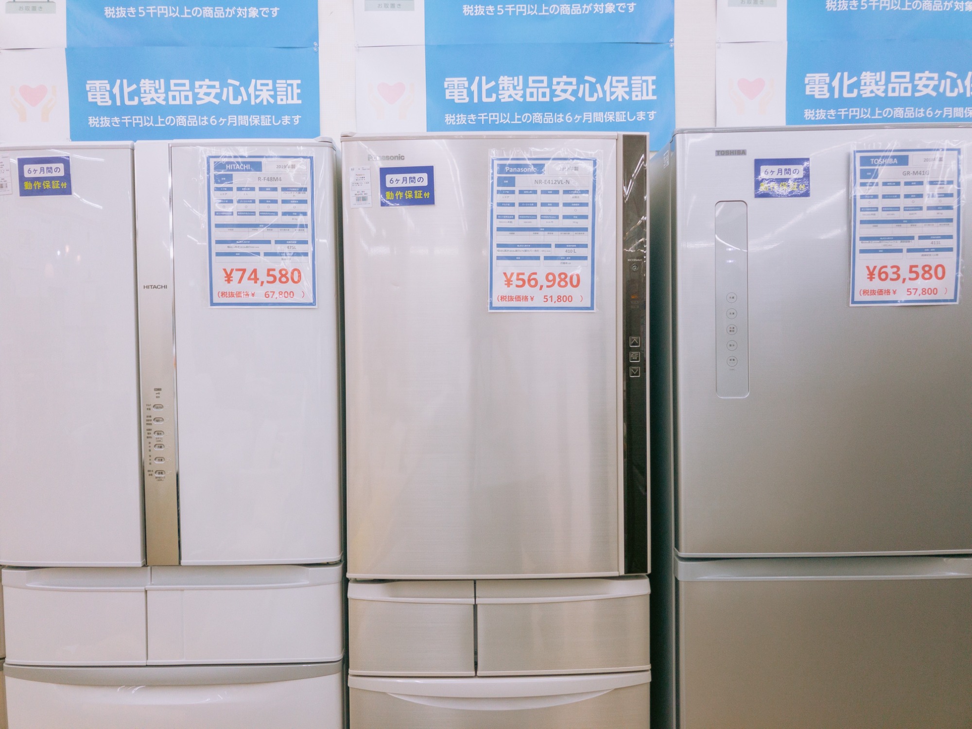 本日は家電コーナーから、展示中の冷蔵庫の一部をご紹介!