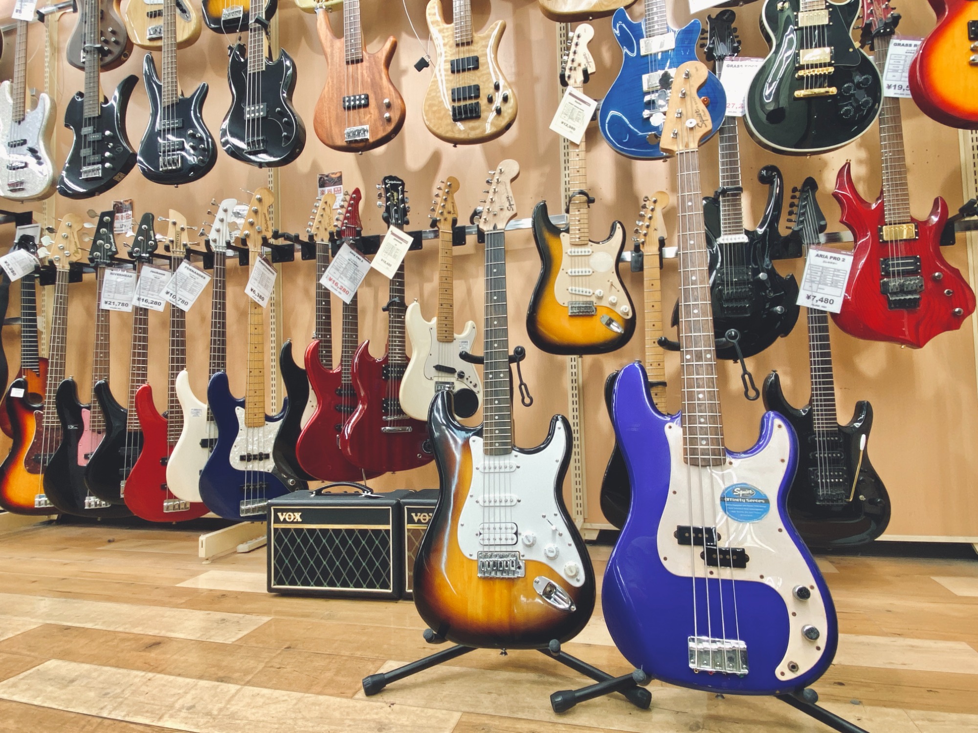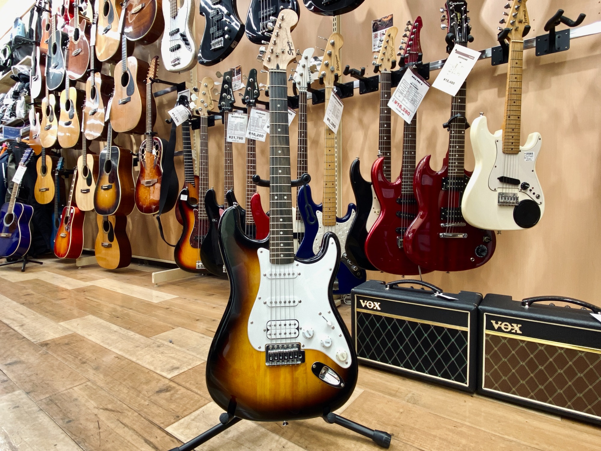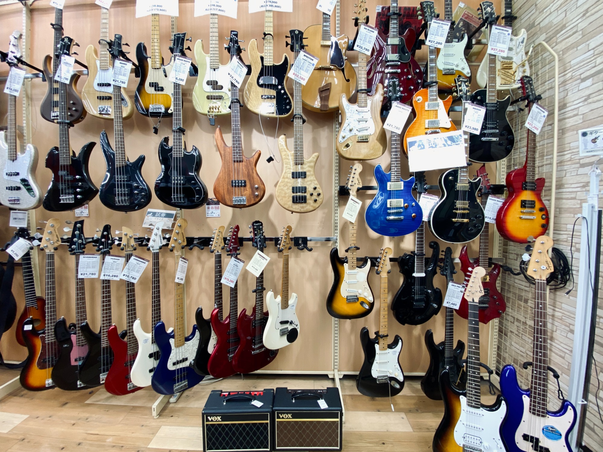 大和駅から車で5分!地域屈指の楽器強化店舗でギターやベース、アンプ、エフェクターなど常に100点以上展示しております!