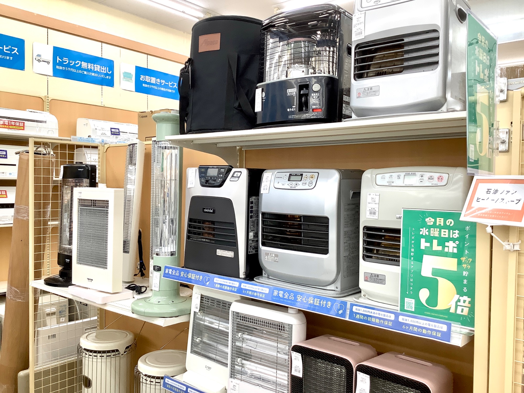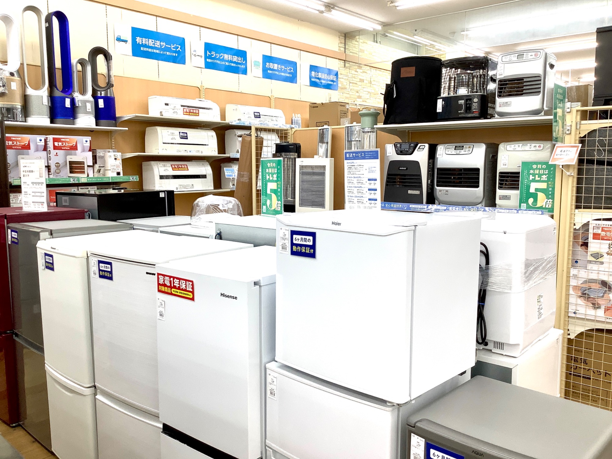 ヒーターやストーブなどの冬物家電、冷蔵庫や洗濯機などの生活家電多数お取り扱いございます!