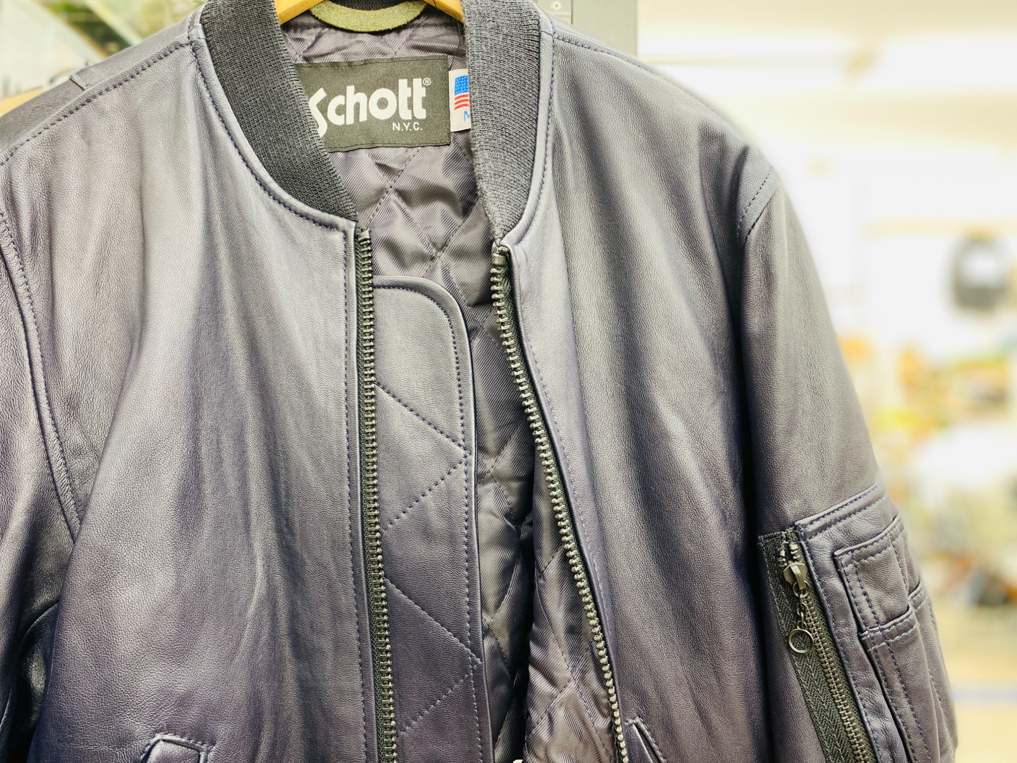shott (ショット) レザ- MA-1ジャケット ネイビー 買取入荷しました!!