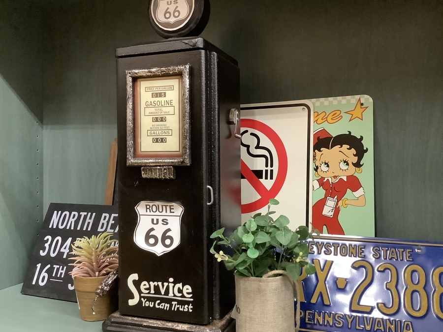 海外のガスポンプがモチーフになっているキャビネットになります!