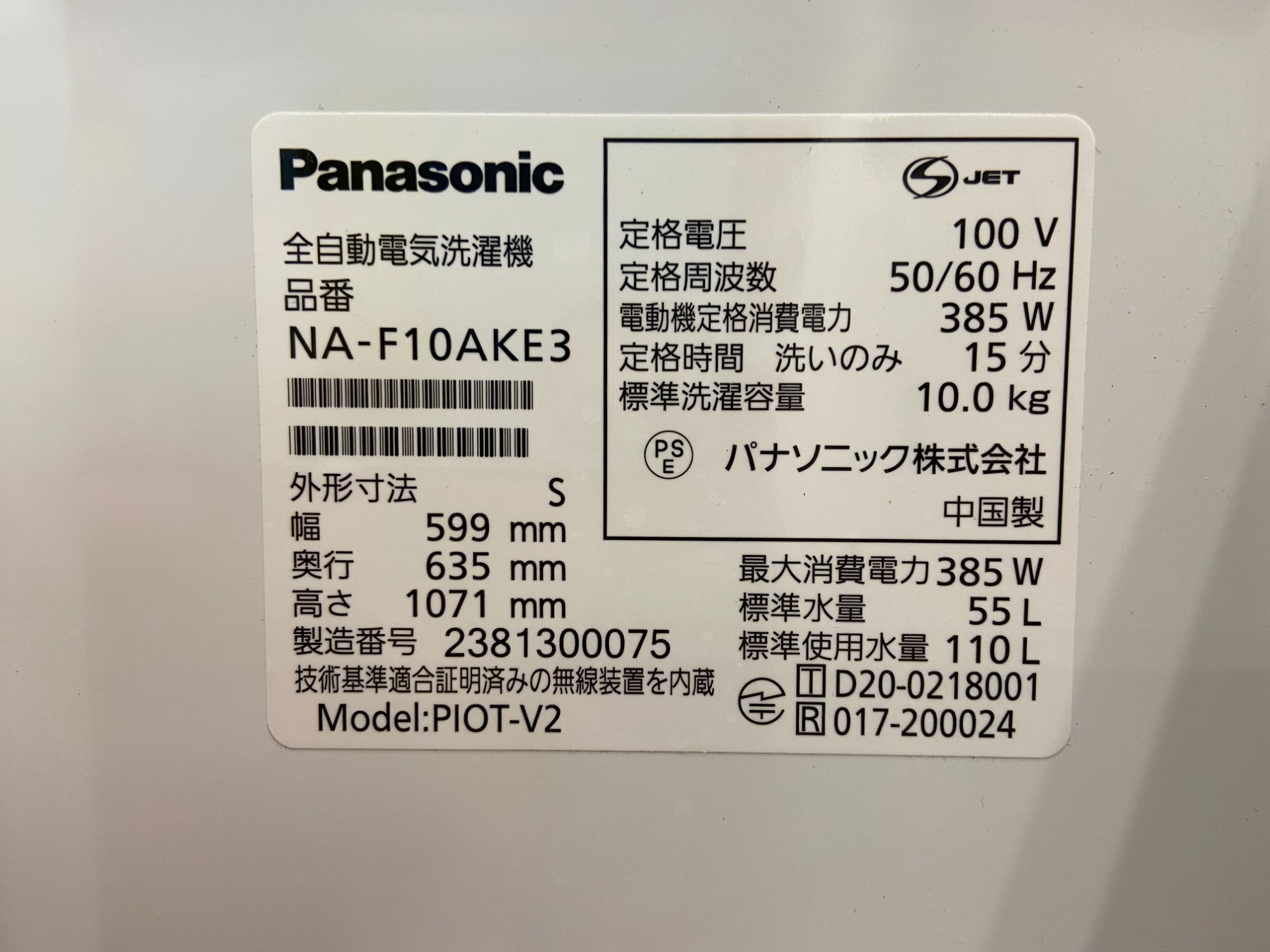 型番:NA-F10AKE3