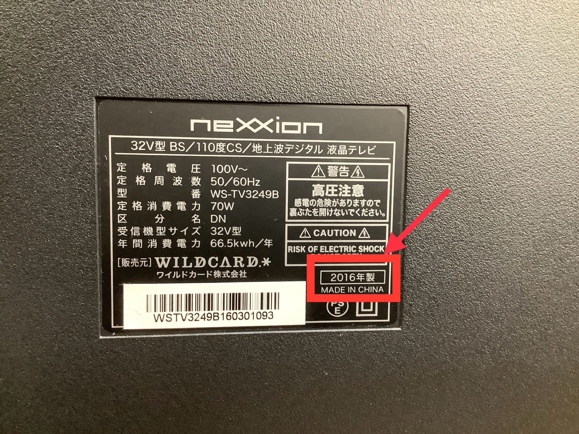 テレビの裏側にあるシールの・・・赤矢印のココ!!