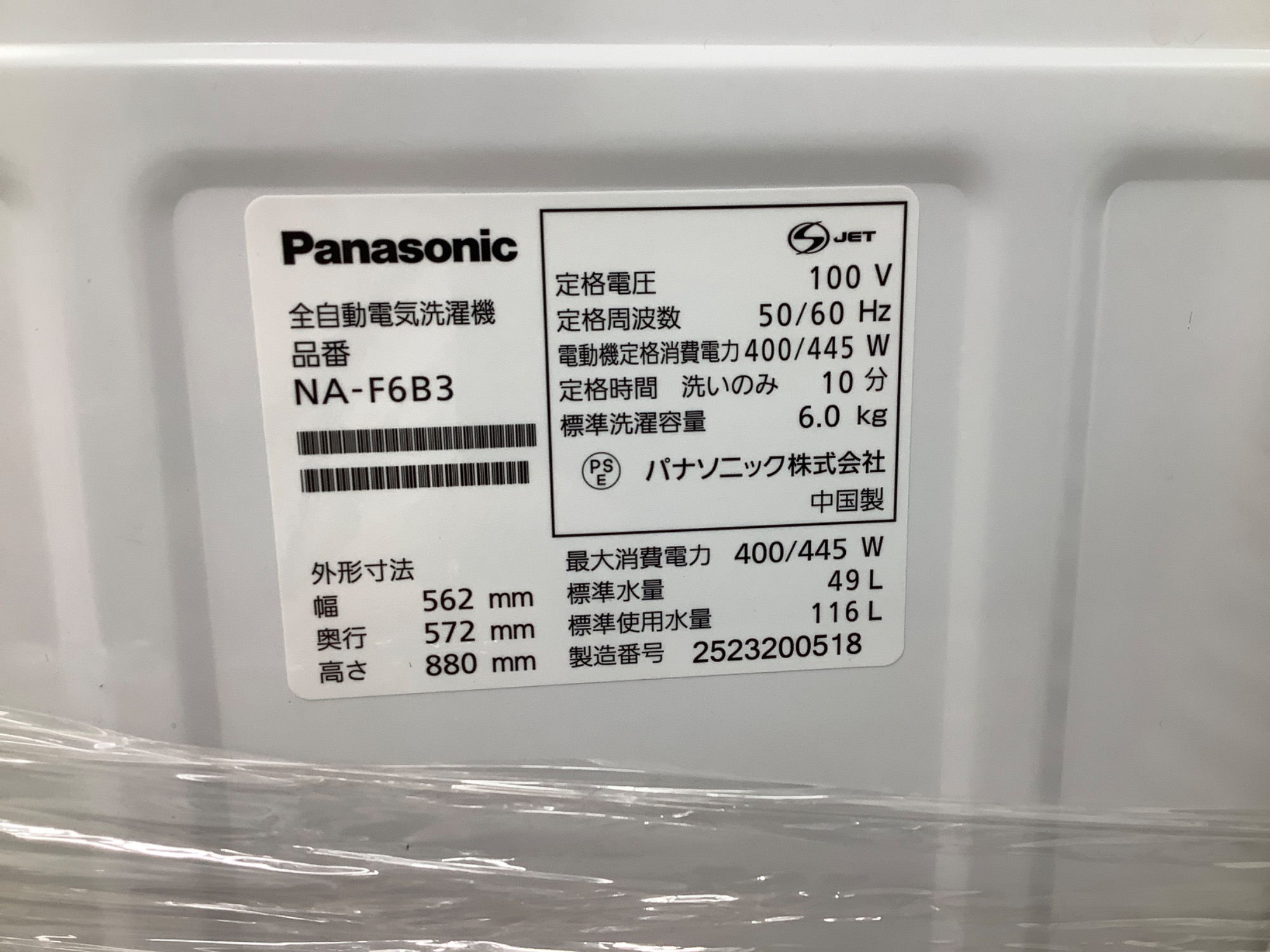 型番 NA-F6B3