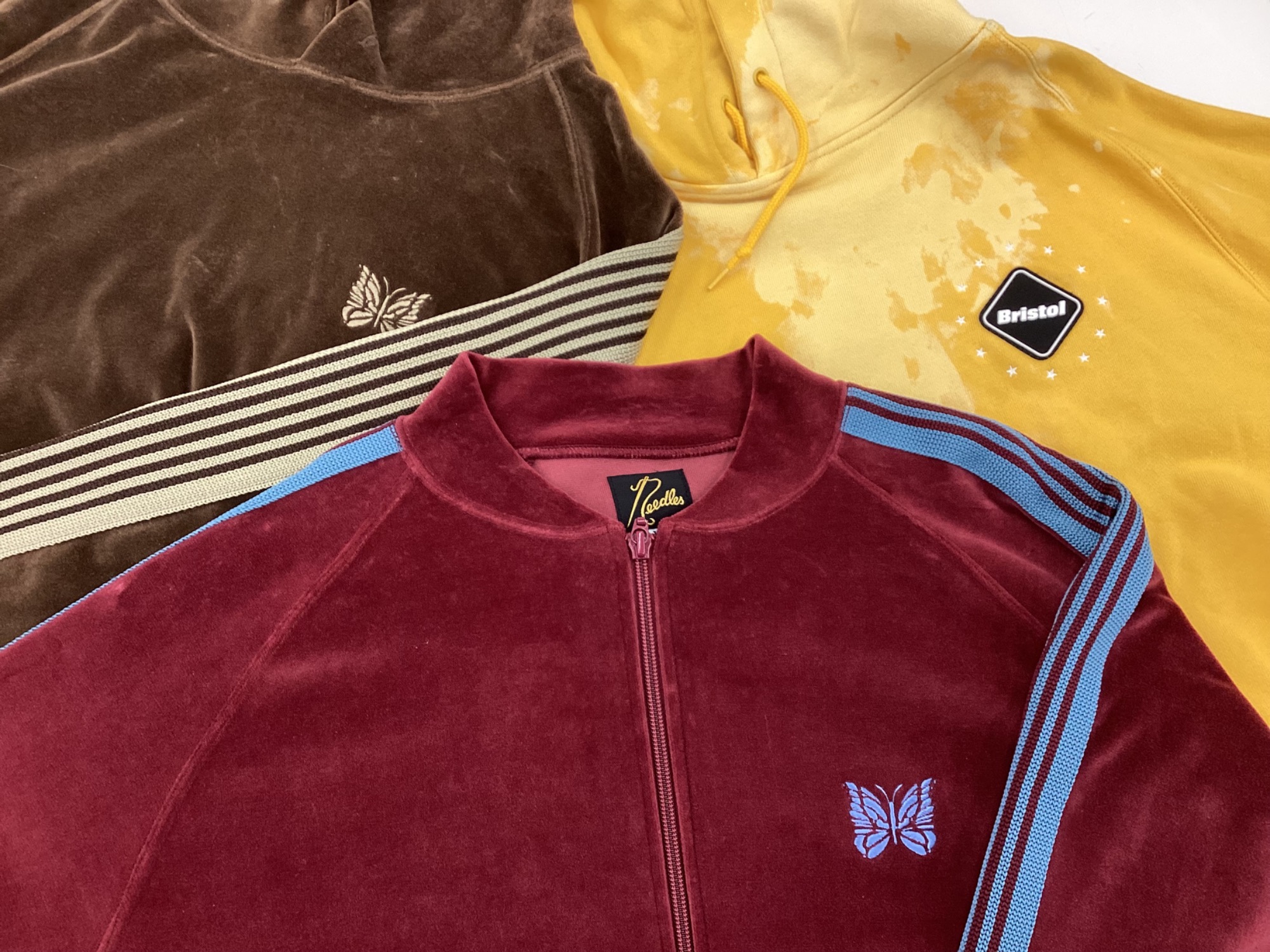 そんな中で本日は、F.C Real Bristolのプルオーバーパーカー、Needlesのトラックジャケット、プルオーバーパーカーを