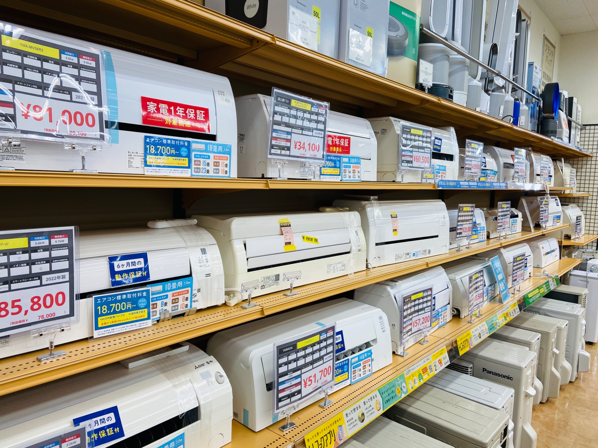 ・エアコンは最大1年間、その他の季節家電も最大半年間の動作保証がございます。
