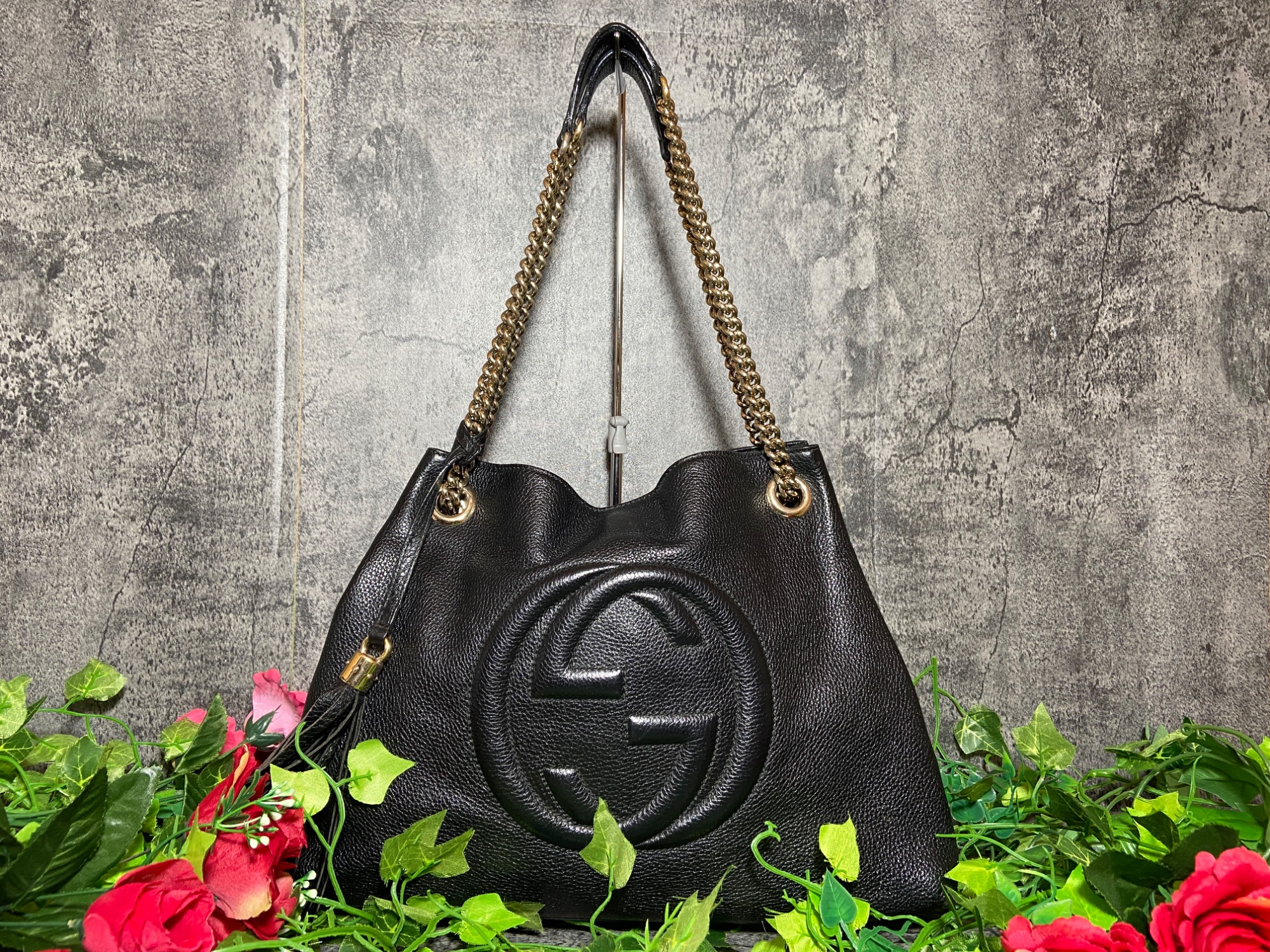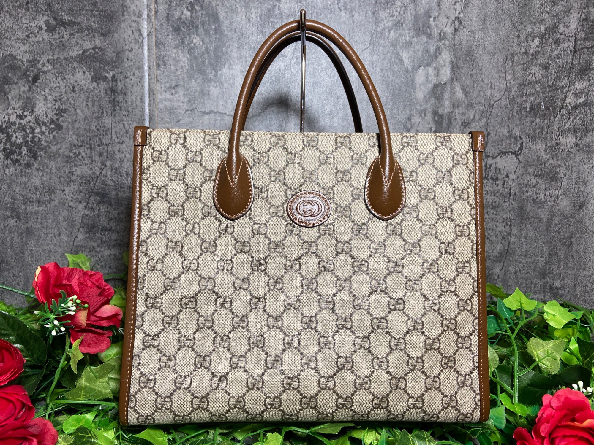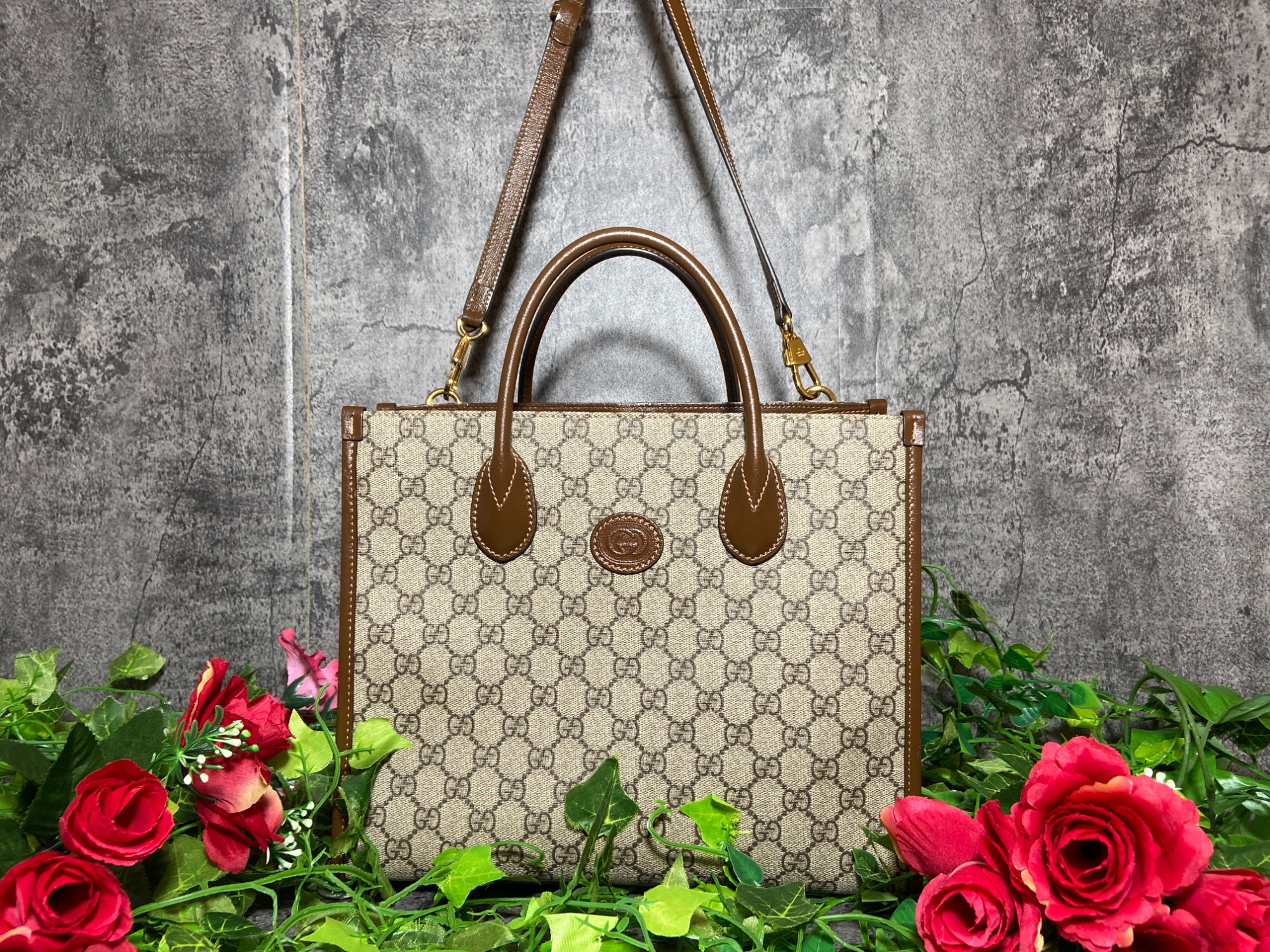 GUCCIらしい柄のトートバッグでストラップも付属しているため、2wayで使用することができ、収納力も高いため、幅広いシーンでお持ちすることができます!!