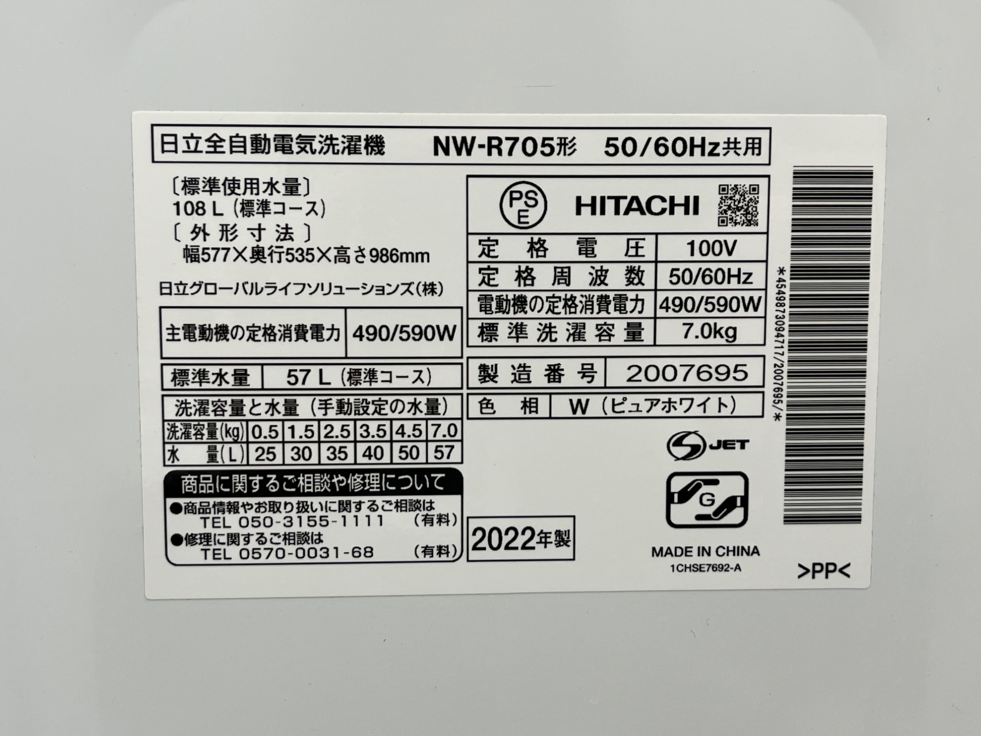 本日は HITACHI 全自動洗濯機 NW-R705 を紹介‼