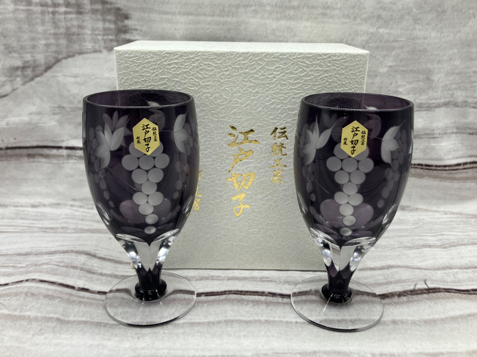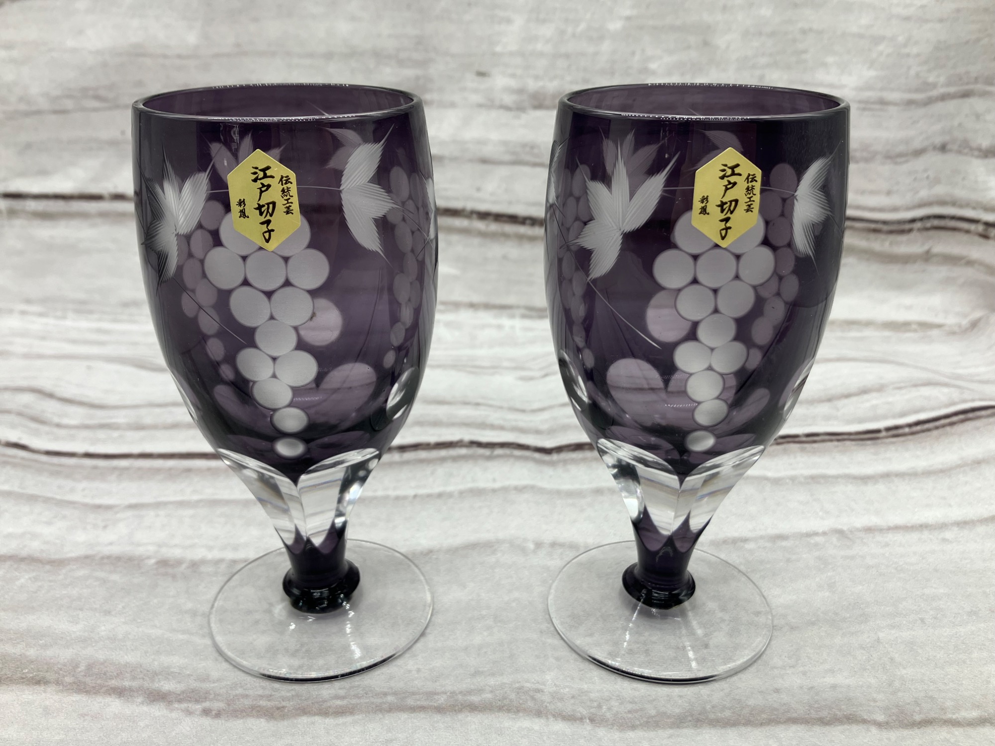 本日は テーブルウェア グラス江戸切子 彩鳳 2Pセット 葡萄柄 のご紹介‼