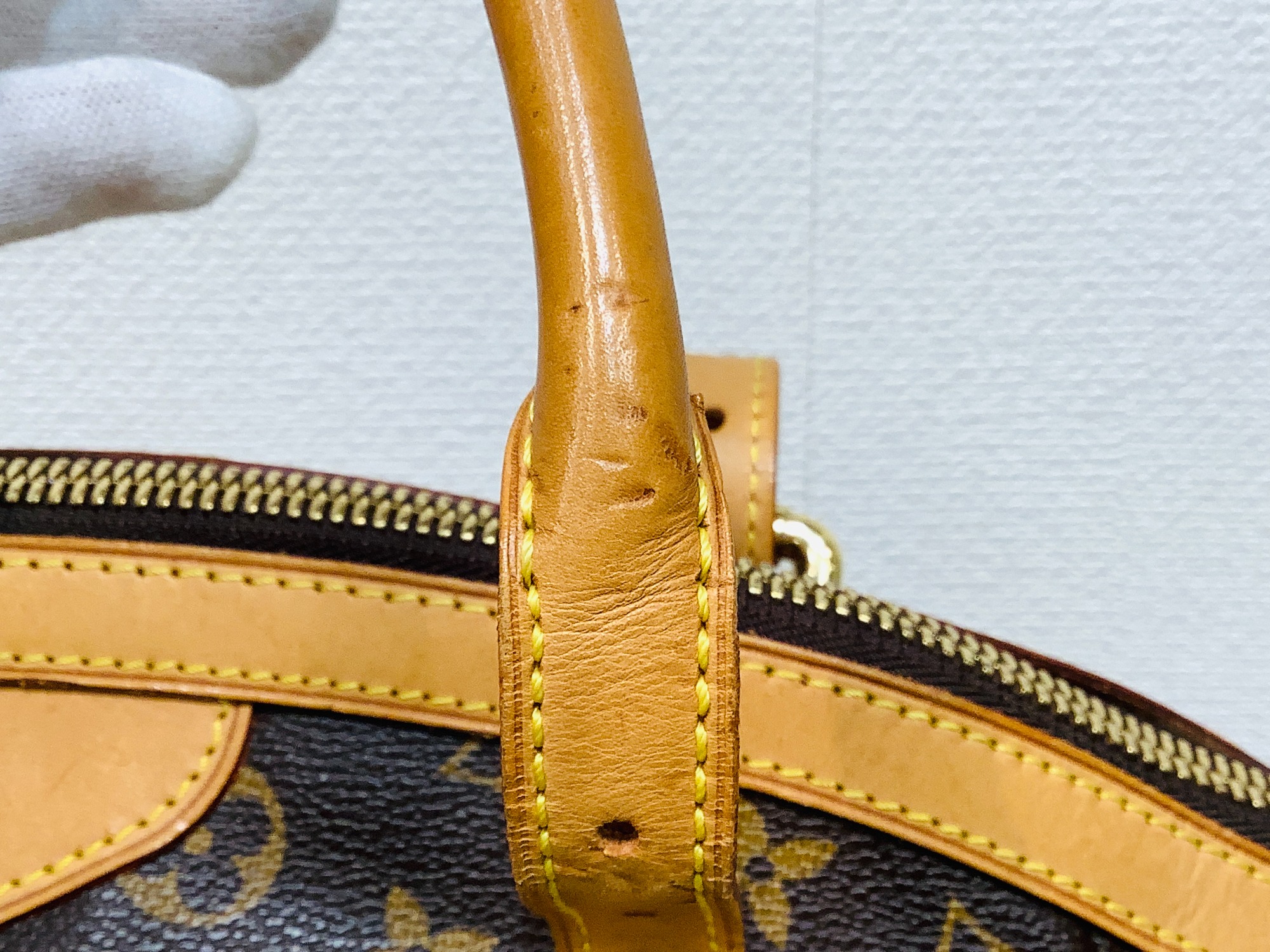 程度はB評価とさせていただいており、持ち手の部分に傷が見られますが、バッグ表面と内部につきましては、ダメージや角スレの見られないお品物となっております!