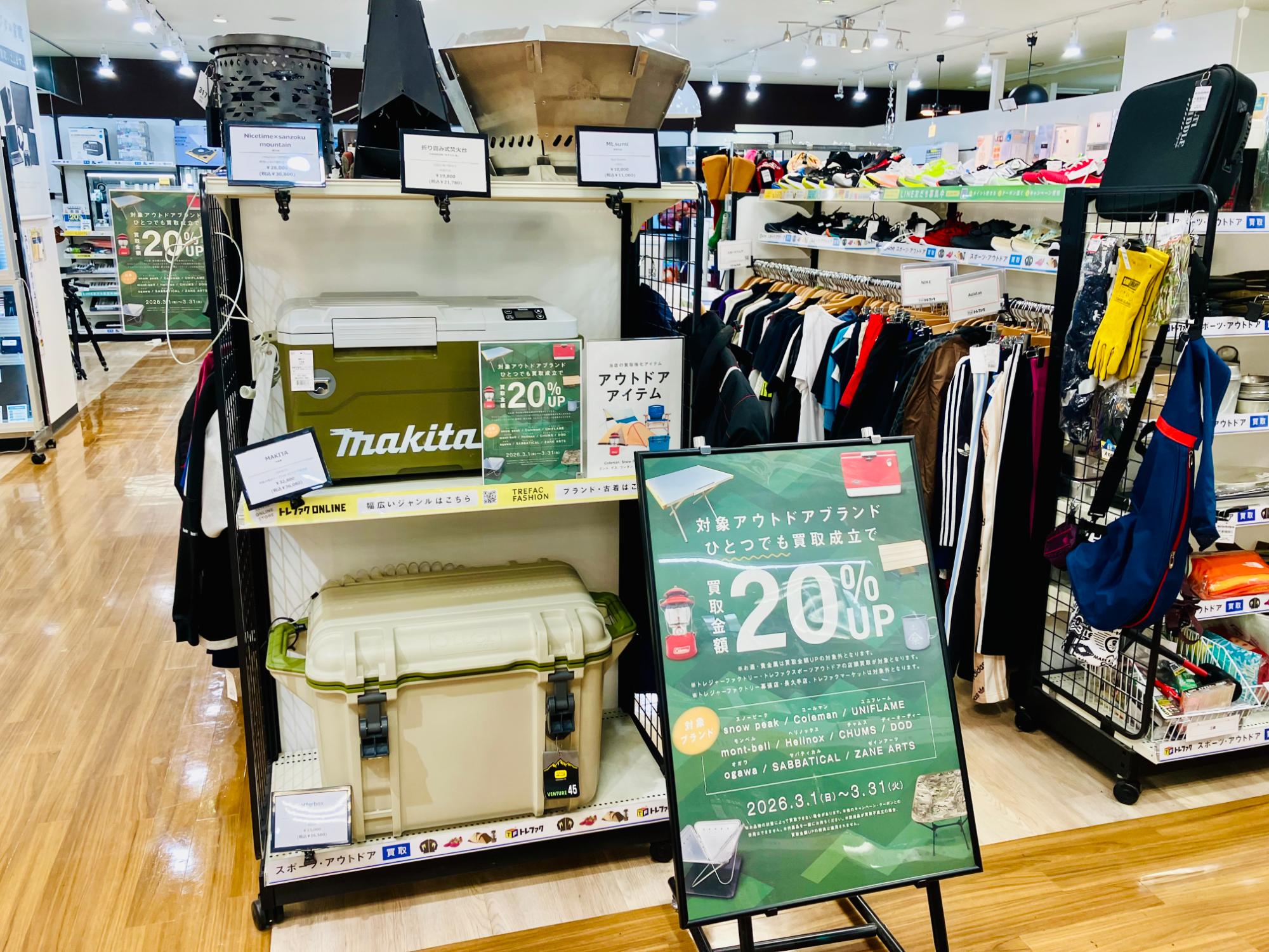 3月はアウトドアブランド10選買取20%UPキャンペーン開催中!