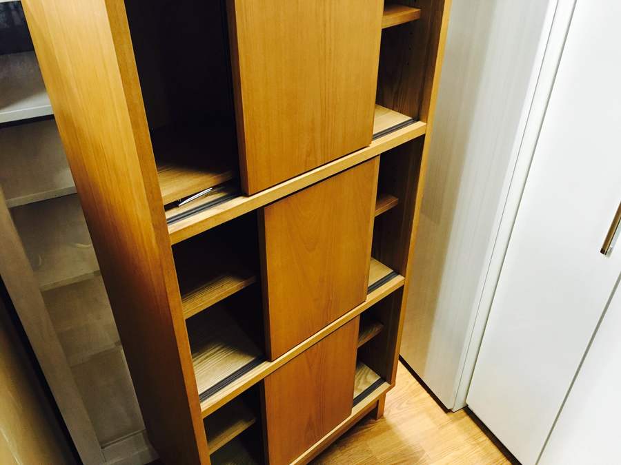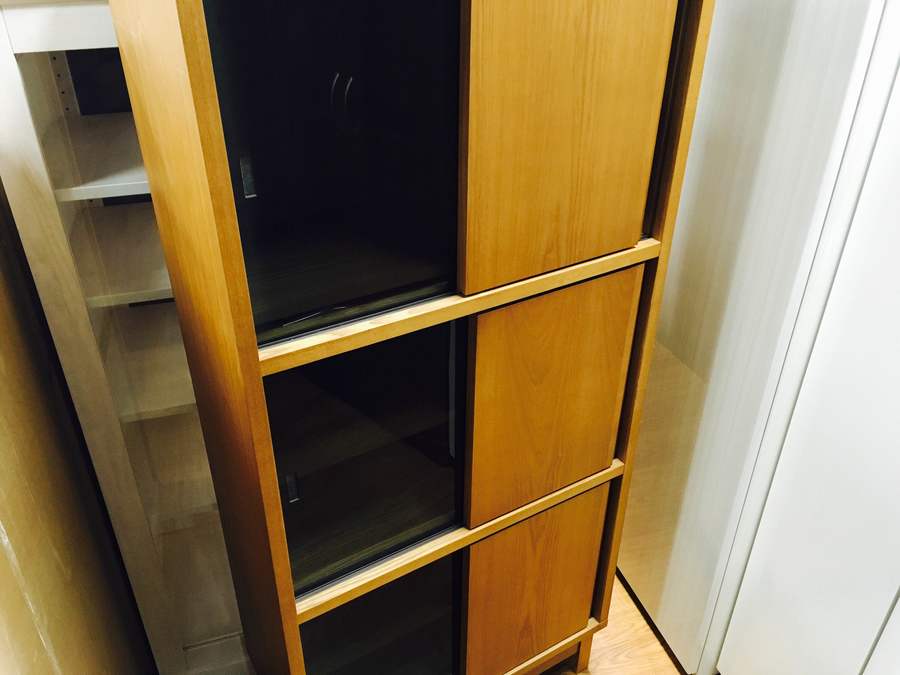 三段に分かれており、扉の片方には本棚ではなかなか見ないガラス扉を採用しております!
