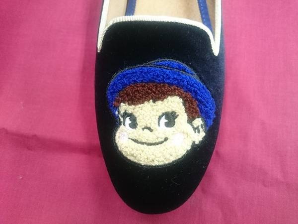 皆さんおなじみのペコちゃん・ポコちゃんが刺繍されています♪