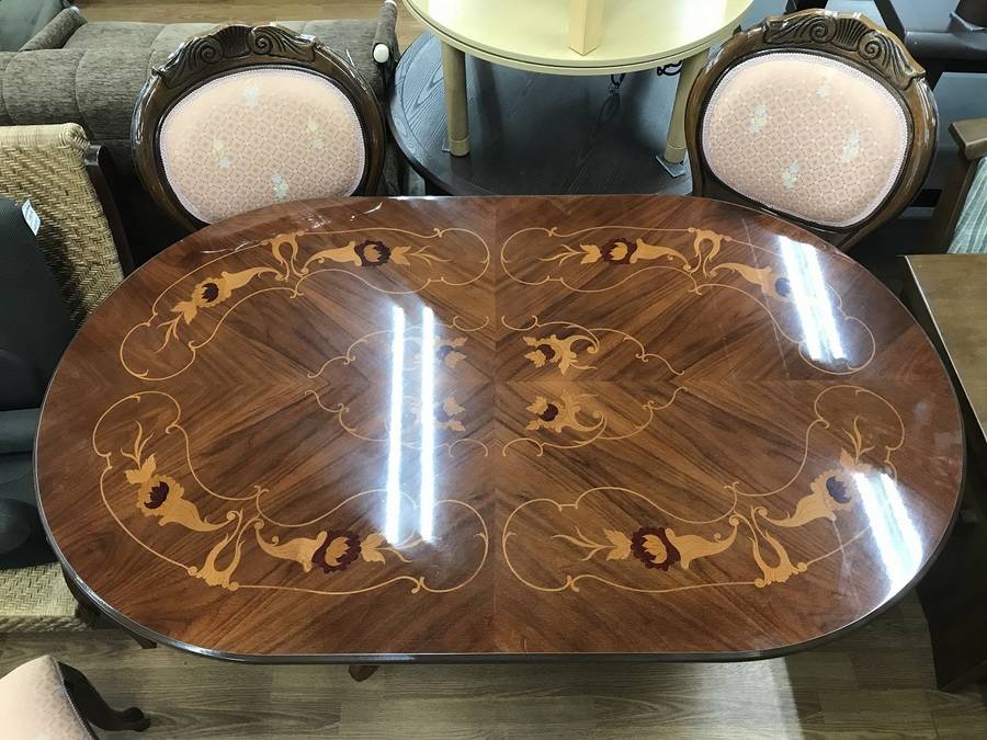 浦和店 店舗TOP 店内紹介 新入荷ブログ 地図・アクセス さいたま市にあるリサイクルショップ 浦和店からの新入荷&買取情報です! アンティーク調 ダイニング4点セット 買取入荷!!【浦和店】 2018-02-17 #家具 #ダイニングセット #アンティーク #象嵌 こちら公開後3ヶ月以上の記事です。商品の売り切れなど情報が古い場合があります。 ・最新の掘り出し物入荷情報はこちら ・いま店頭で使えるクーポンはこちら 北浦和駅近くにある総合リサイクルショップトレジャーファクトリー浦和店です!! 本日は・・・ダイニング4点セットのご紹介です!! アンティーク調ダイニング4点セットブラウン象嵌側面割れ有テーブル横148cm幅87cm高さ75cmお問い合わせ番号1007004856083テーブル脚1脚2脚3椅子椅子アップテーブル柄1テーブル柄2 過去の浦和店の新入荷情報です!!こちらをクリック!浦和店地元応援!浦和レッズアイテム多数取り揃えております!買取も強化中! 【営業時間】平日:11:00〜20:00 (買取受付は19:00まで)土日祝:10:00〜20:00(買取受付は19:00まで)