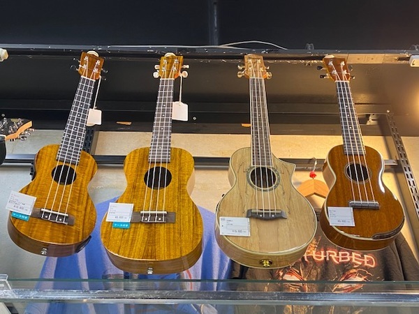 バイオリンやウクレレ、金管楽器なども展示しております♪
