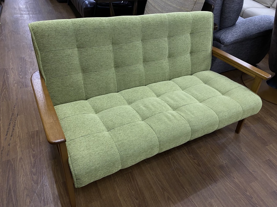 家具・家電なら当店へ!木製アームの2人掛けソファー入荷!