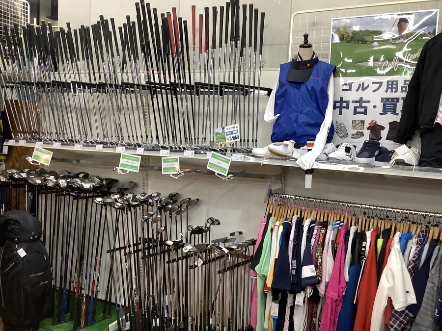 中2Fにはゴルフグッズや釣りグッズ、自転車や浦和レッズのグッズも並んでおります!!