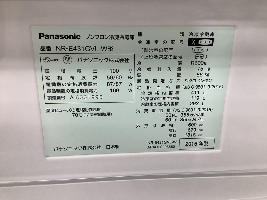 型番 NR-E431GVL-W