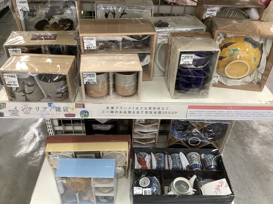 5月中に対象ブランドのインテリア雑貨・キッチン雑貨・食器やタオルなどをお売りいただくと、すべての買取が20%UPとなります!
