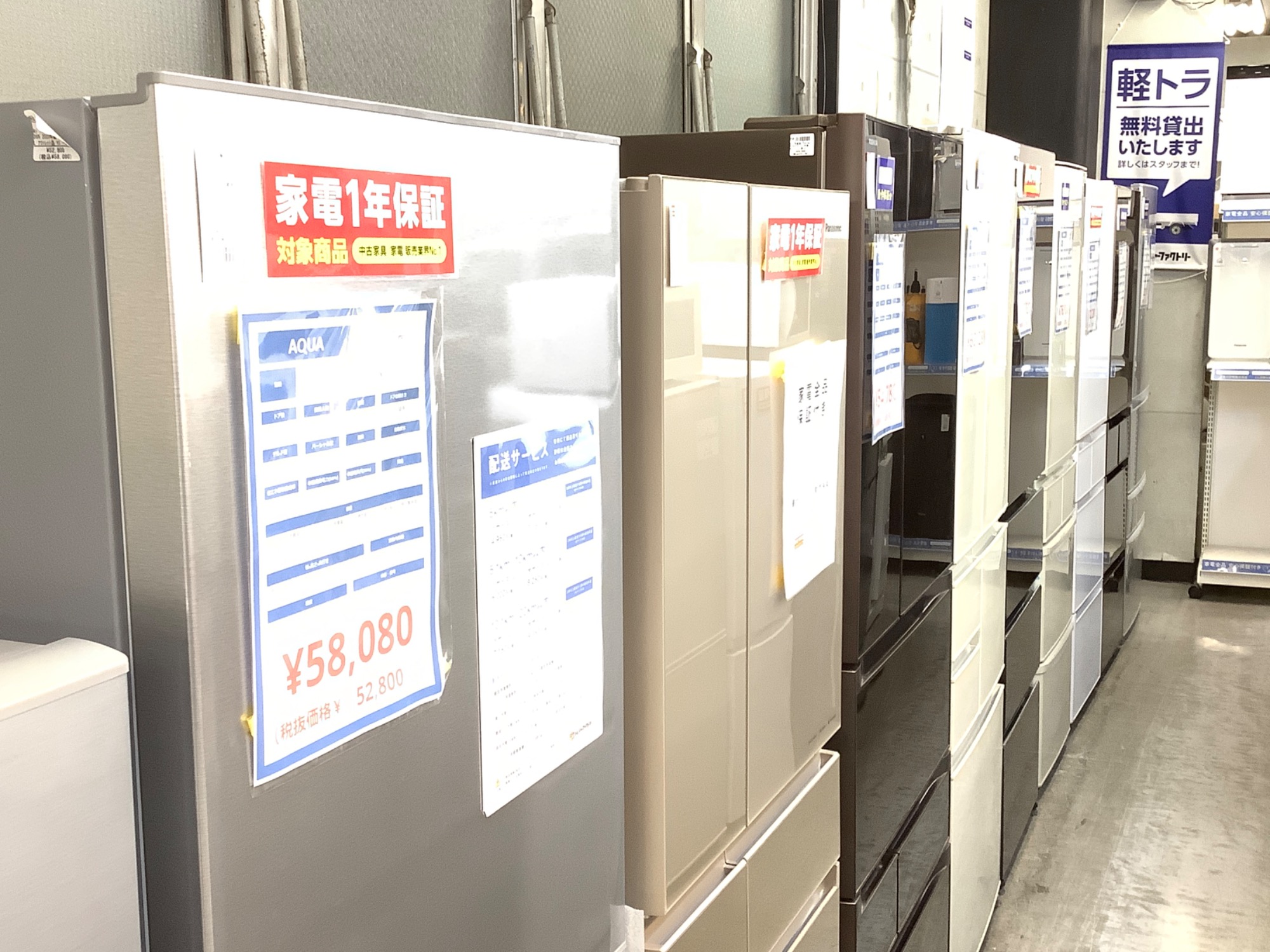 大きな家電製品には無料の軽トラック貸し出しサービス・有料での配送サービスもございます!