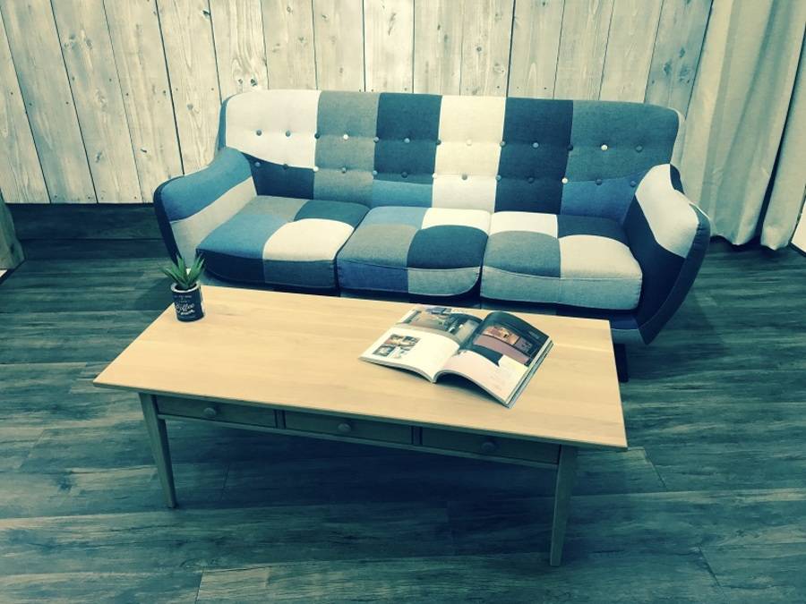 パッチワークデザインの3Pソファを合わせたイメージ。