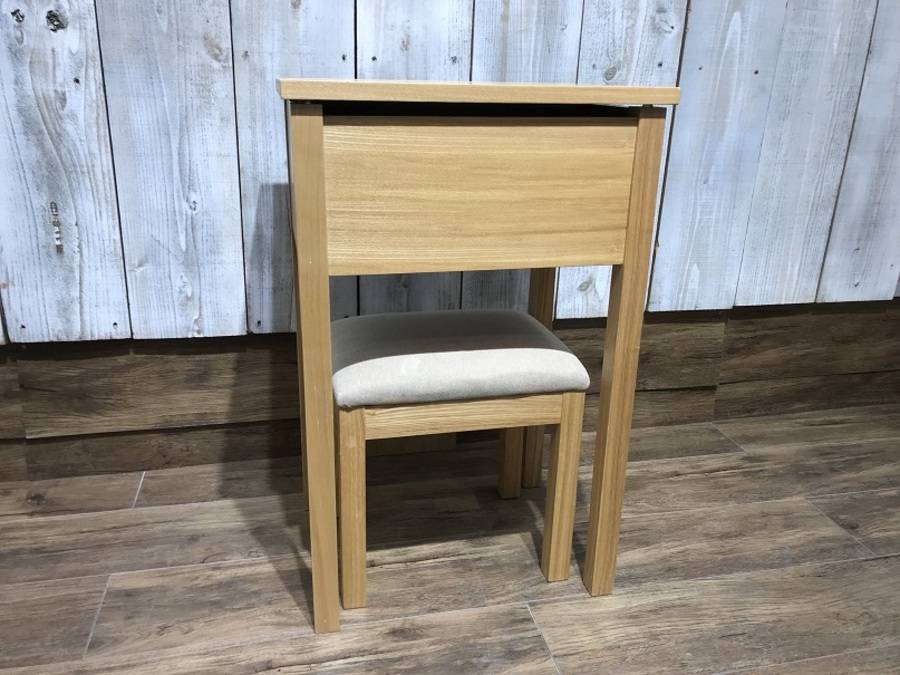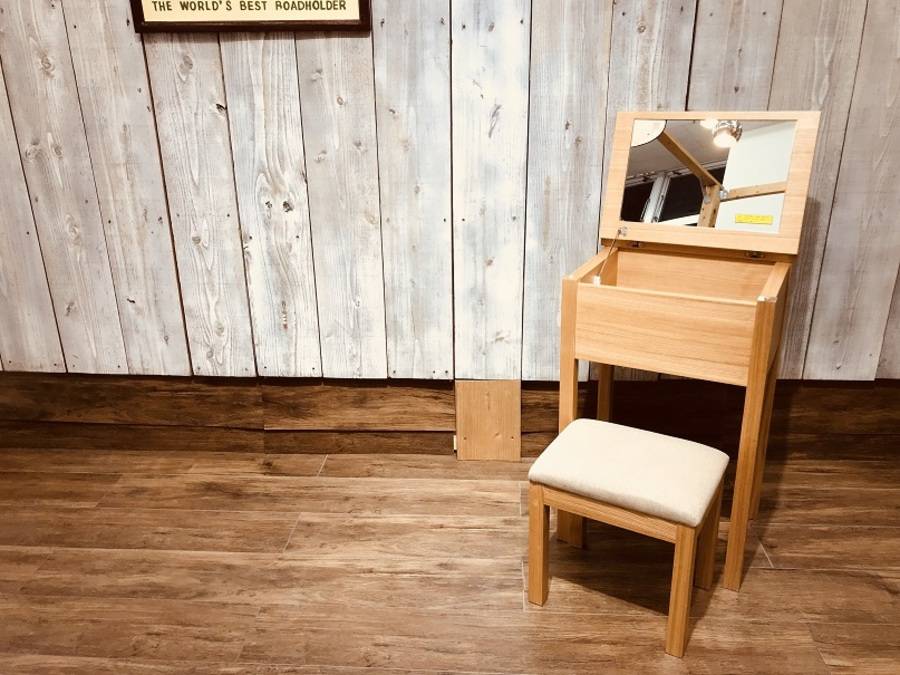 現在は廃盤で入手困難なタモ材を使った木製ドレッサー/スツール付きです。