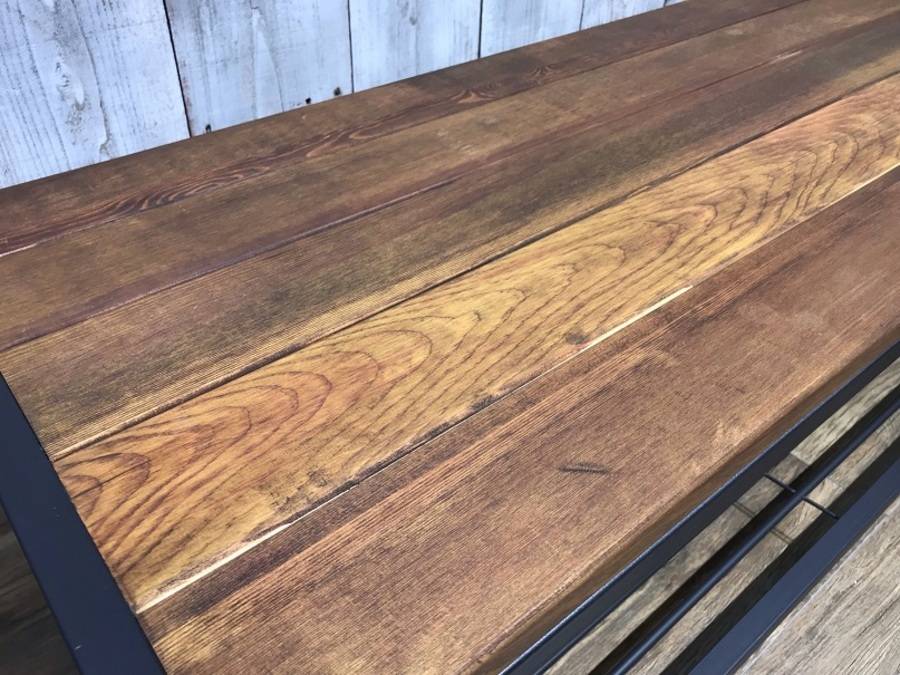 つや消し加工が施されたアイアンフレームとパイン材が、モダンなデザインを醸し出します。