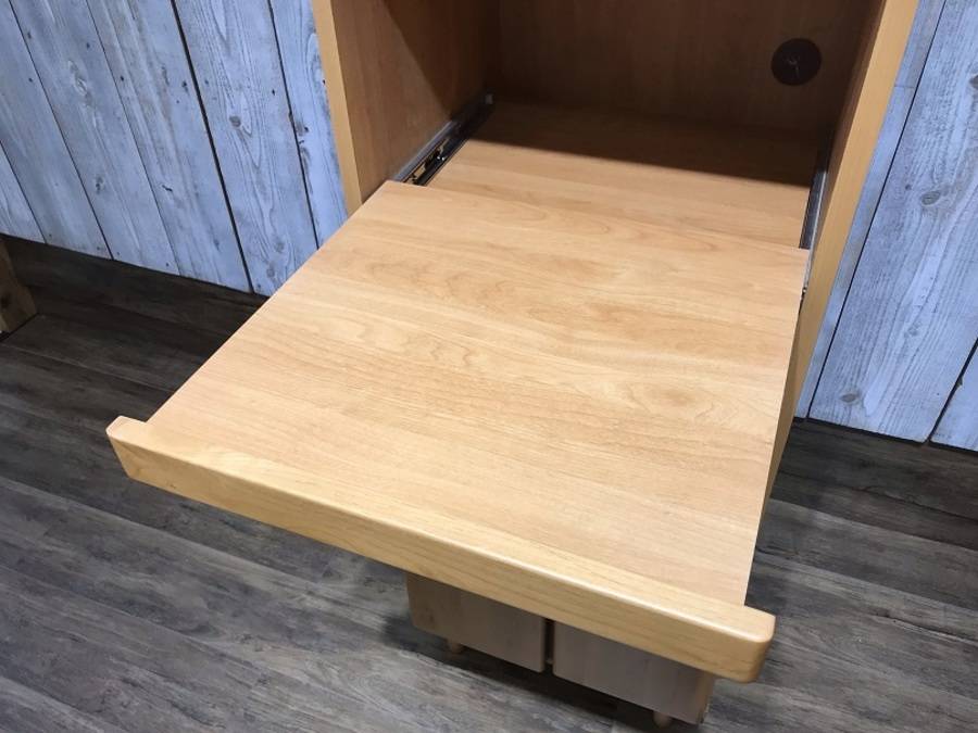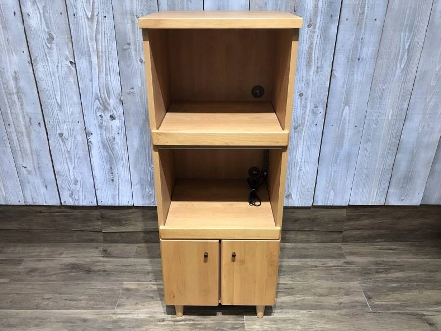 木の温かなぬくもりを感じられるナチュラルテイストなレンジ台。